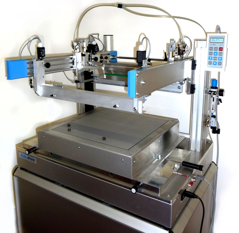 | De conception robuste, la RPZ 500 est équipée de la même électronique programmable que tous les autres modèles : une fois les réglages faits (hors-contact, course d’impression, hauteur d'objet…), on mémorise et la prochaine fois… il suffit d'appeler le programme et la machine est prête à imprimer ! |