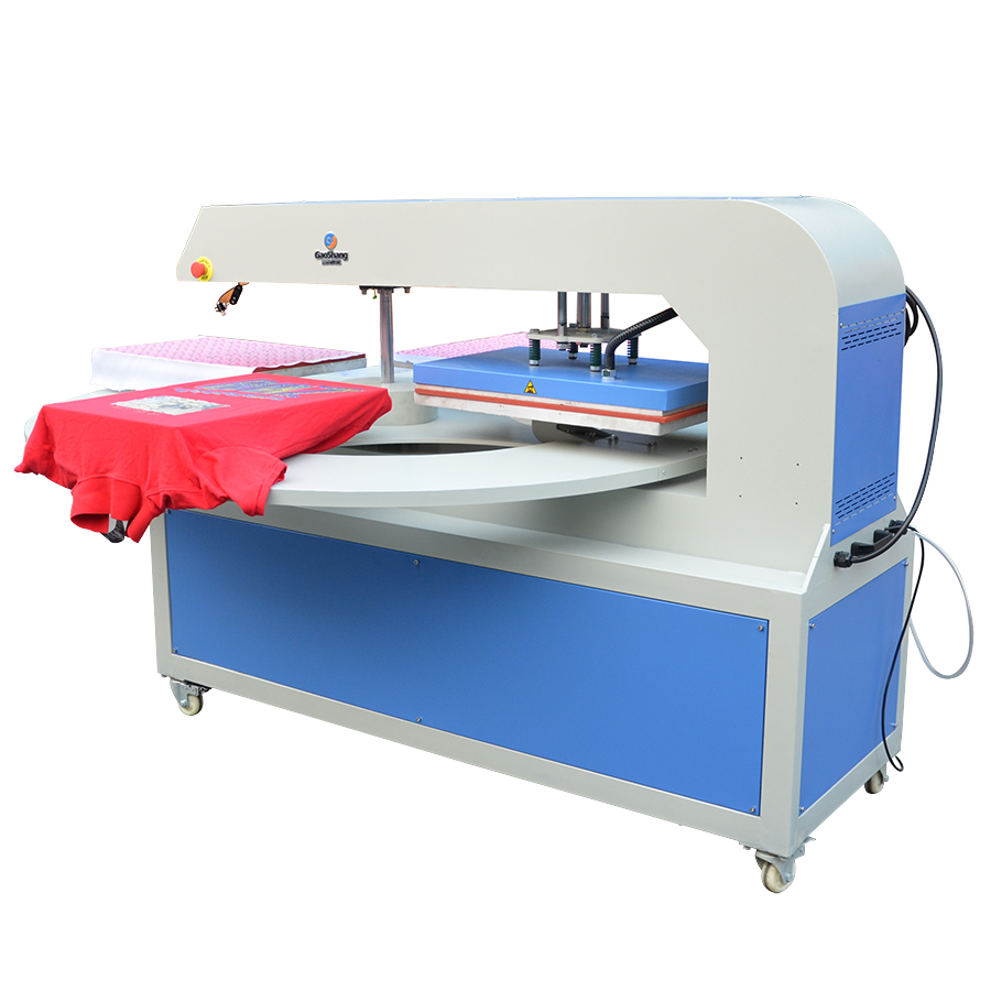 Carrousel automatique pour la pose de transferts. Commande et réglage par écran tactile. Affichage numérique de la température et du temps de pression. Ajustement de la vitesse de rotation afin de l'adaptée à la vitesse de pose. Plateau chauffant à température uniforme.
